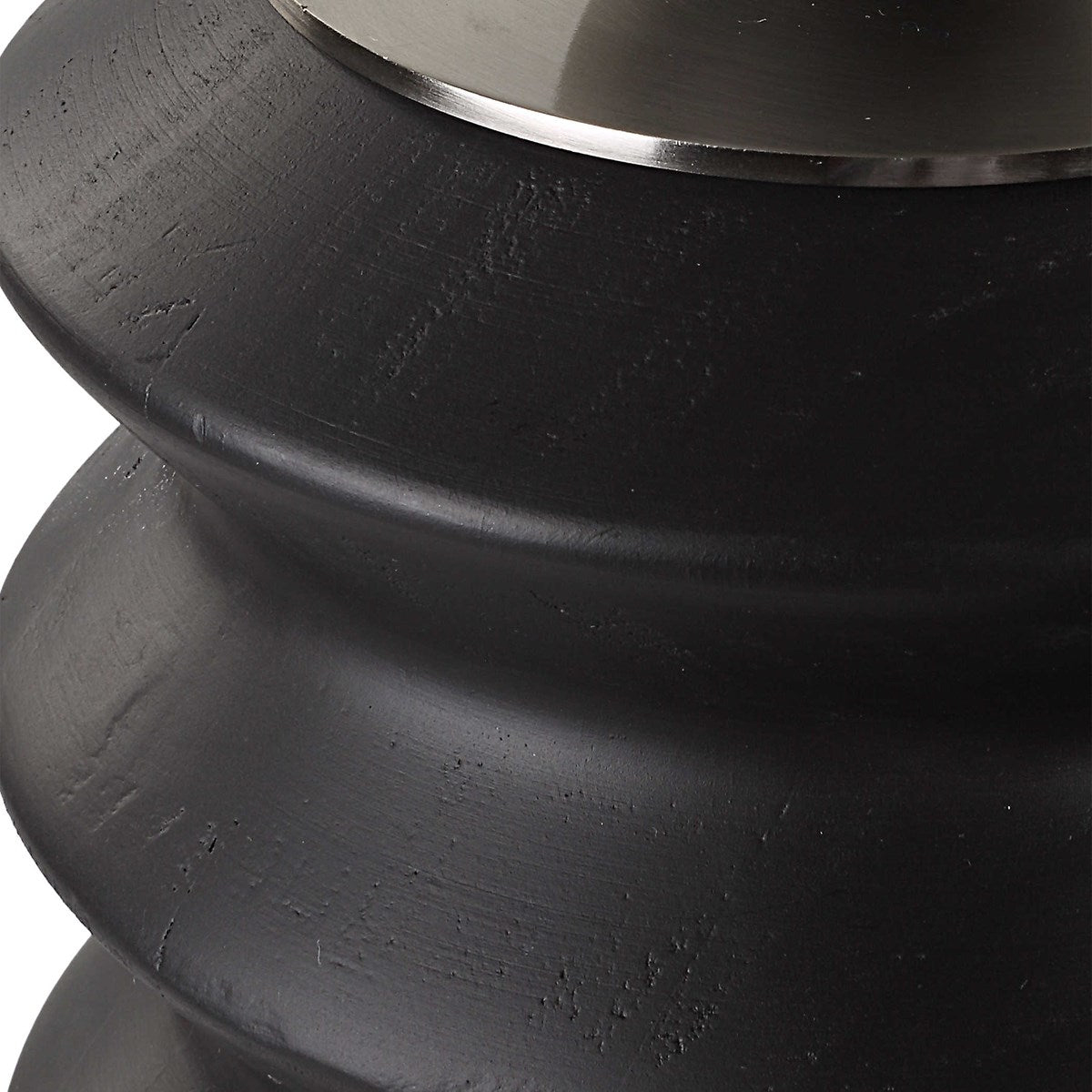 Accent any table or countertop with these black stained wood containers with brushed nickel lift-off lids
